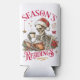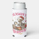 A festive and cheerful Christmas holiday design showcases a skeleton wearing a Santa hat, reading a book, and holding a steaming cup of coffee. Surrounding him are poinsettias, holly berries, and pine tree branches. The colorful text says: "Season's Readings." This design is available on a variety of products, making it the perfect gift for book lovers.