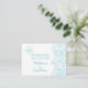 Doppelseitige, einfache, moderne Strandsegel-Karte mit Hochzeitsnacht in Aqua-Blau und Weiß, mit Seestern zeichnend und wirbelnden Wellen. Diese Empfang-Umschließungskarte ist Teil eines passenden Hochzeitskartons-Set. Ideal, um als Hochzeitsausweis nach der Zeremonie, oder eine Wegweisungskarte, um Sie behalten, Gäste über den Tag und Party vor, können auch eine Geschenkkartei, Unterkunft-Karte, eine Wunschgutkarte oder Dankkarte mit Ihrem Stück vom Kuchen zu parting, oder sogar eine Hochzeitswebsite-Karte, indem Sie den anpassbaren Text auf der Vorder-und Rückseite. Einzigartig gestaltet von Sarah Trett.