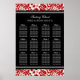 Seating Chart 12 Tables 96 Guest Red Black Damask Poster