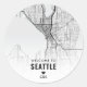 Ein Begrüßungsaufkleber mit der Stadt Seattle, Washington, und seinem einzigartigen, auf das Liebe Locator Hochzeitseinladungs-Set zugeschnittenen Overhead-Kartenlayout.