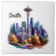 Diese hübsche Keramik wird mit einem Seattle Skyline Aquarellkunstprint gezeigt. Passen Sie dieses Objekt an oder kaufen Sie es wie gezeigt. Lizenziertes Bild