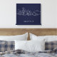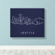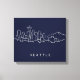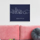 Dieses Design zeigt eine handgezeichnete Skizze der Skyline von Seattle auf einem dunkelblauen Hintergrund.