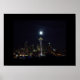 Das Poster wird nachts mit einem Foto-Druck der Seattle Skyline gezeigt. Plakathintergrund ist schwarz. Passen Sie dieses Objekt an oder kaufen Sie, wie es ist. Bild
