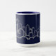 Dieses Ausrüstungsbeschreibungen eine Hand gezeichnete Skizze des Seattleskyline auf einem dunkelblauen Hintergrund.