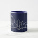 Dieses Ausrüstungsbeschreibungen eine Hand gezeichnete Skizze des Seattleskyline auf einem dunkelblauen Hintergrund.