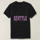 Stilvolles Seattle Skyline-Design mit bildhaften Sehenswürdigkeiten wie der Space Needle, dem Pike Place Market und dem Mount Rainier. Eine Hommage an die schöne Stadt Seattle, Washington.