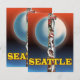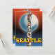 Seattle Totem Pol Vintages Reiseplakat eines schönen alten Totem vor einem großen Vollmond.