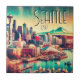Dieses künstlerische Bild von Seattle zeigt die stehende Höhe der ikonischen Space Needle gegen die moderne Skyline der Stadt. Die Szene fängt Elliott Bay mit Booten im Vordergrund und dem majestätischen Berg Rainier im Hintergrund. Die lebhaften Farben und der sonnige Tag erinnern an die dynamische Energie und die natürliche Schönheit dieser Stadt im Nordwesten des Pazifiks. Der Stil verbindet Realismus mit warmen, einladenden Tönen, um eine malerische Aussicht zu schaffen.