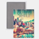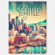 Dieses künstlerische Bild von Seattle zeigt die stehende Höhe der ikonischen Space Needle gegen die moderne Skyline der Stadt. Die Szene fängt Elliott Bay mit Booten im Vordergrund und dem majestätischen Berg Rainier im Hintergrund. Die lebhaften Farben und der sonnige Tag erinnern an die dynamische Energie und die natürliche Schönheit dieser Stadt im Nordwesten des Pazifiks. Der Stil verbindet Realismus mit warmen, einladenden Tönen, um eine malerische Aussicht zu schaffen.