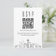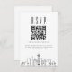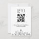 Eine minimale Hochzeitsrsvp QR-Code-Karte mit einer schönen stylisierten Skyline, die die Stadt Seattle repräsentiert. Ersetzen Sie den QR-Code durch einen Link zu Ihrer Website, um Ihren künftigen Gästen die Beantwortung Ihrer Hochzeitsfeier zu erleichtern.