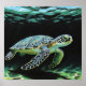 Dieses Plakat zeigt eine Ölfarbe von einer ruhigen Meeresschildkröte, die unter Wasser schwimmt.