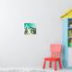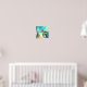 Dieses horizontale Poster zeigt ein skurriles Aquarellbild einer Meeresschildkröte, die von ihrem Sandschloss nah wurde