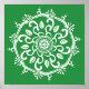 Dieses weiße Mandala sitzt auf grünem Hintergrund. Die Farben sind sehr entspannend und friedlich. Teil der Payon Mandala Kollektion.
