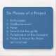 Sechs Phasen einer Suche des Projekt-1. der Begeisterungs-2. der Desillusionierung-3. der Panik-4. nach der schuldigen Bestrafung 5. der unschuldigen 6. Lob und Ehre für jene nicht beteiligten