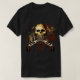 Ein Kopfnicken zu den populären Western- oder Revolverheldvideospielen wie roter toter Abzahlung und GEWEHR, dieses Ausrüstungsbeschreibungen ein Schädel ohne unteren Kiefer über zwei kreuzte Westernartrevolver. Hintergrund ist ein städtisches oder Schmutzthema.