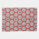 Traditionelles japanisches Kimonodruck-Teetuch - Verschachtelungshexagone mit einem zentralen Blumenmotiv im tiefen chinesischen roten, weißen und dunklen Graphitgrau auf einem hellen silbernen Grau/einem grauen Hintergrund