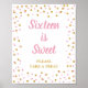 SIXTEEN IS SWEET - BITTE NEHMEN SIE EIN LECKEREI 16. Geburtstagsschild mit einem schönen rosa und goldenen Glitzer Konfetti-Design.