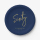 sechzig | Gold & Navy Blue Lettering 60. Geburtsta Pappteller