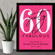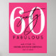 Feiern Sie stilvoll mit dieser modernen, hellrosa "Fabulous Birthday Party"-Einladung, perfekt für ein "Sechzig und Fabulous"-Thema oder jede andere Jubiläumsfeier. Das Design zeigt eine große weiße "60" oben, über die das Wort "sixty" in eleganter schwarzer Schreibschrift gelegt ist. Darunter erscheint "fabulous" in einer fetten schwarzen sans-serif-Schrift für einen sauberen, modernen Abschluss.