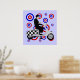 Sechziger Karo Mod Roller mit roten und blauen Kreissenkungen. Handgezeichnete und farbige Kunstwerke, großartige Geschenke für alle Liebhaber der sechziger Mod-Kultur oder Roller