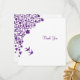 Secret Garden lila Blumenlieder, flache Hochzeit danke Karten. Passen Sie Ihre persönliche Nachricht und Ihren Namen an. Entworfen, um unsere Lovebirds Secret Garden Wedding Collection zu passen.