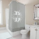 Eleganter mit Monogramm Duschvorhang in neutralem Schwarz/Weiß weist auf das erste Monogramm Ihres Single hin, das mit Ihrem Familiennamen überzogen ist und mit einer Blumendarstellung und einer botanischen Kontur geschmückt ist.