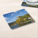 PapierFoto-Untersetzer mit ausgeblutetem Schloss auf einer hohen Klippe über See blutete, umgeben durch Bäume mit Laub in den Herbstfarben in einer schönen Falllandschaft, in geblutet, Slowenien.