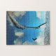 Eine Aquarellfarbe von Spiegeln des Himmels und des Holzes auf dem See.