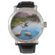 Vintage Männeruhr mit schwarzem Lederarmband