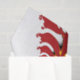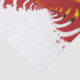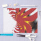 Ein abstraktes Kunstdesign einer mythischen Kreatur, die an ein Meeresanemon erinnert, in Rot, Gelb, Weiß und Gold.