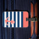 Reisen Sie in Art mit diesem "moderne noble korallenrote tadellose Marine-weiße Streifen-" Gepäckanhänger. Sie können Ihr Monogramm, Namen oder Text auf diesem Entwurf hinzufügen. Es ist einfach und Spaß.