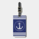 Seeanker-Marine-Blau-Weiß Stripes Monogramm Gepäckanhänger