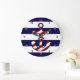 Ein roter und weißer gestreifter Anker auf den blauen und weißen Streifen machen diese Uhr bunt und Spaß für die, die Liebe das Schiff und das Meer.