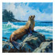 Eine digitale Abbildung eines Seelöwen, der sich faul am Felsrand putzt.