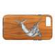 Seechrom-blauer Speerfisch auf Teakholz-hölzernem Case-Mate iPhone Hülle
