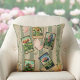This retro seed packet striped throw pillow features a collection of seed packets scattered artfully on a sage green damask striped background. Green vines, a sunny sunflower, and small, pink butterflies add to the organic look of this garden inspired tissue paper. The artwork is treated with a velveteen filter to give it a slightly shimmery look, although the pillow is not made from velvet. Refer to the description on the type of material. This botanical pillow would make a great addition to gift wrapping for a gardener, or else serve as a focal point in decoupage projects.