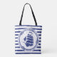 Blaues Seeemblem mit Segelschiff auf einem gestreiften Hintergrund | © und einem ® Bigstock® - alle Rechte vorbehalten.