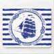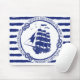 Blaues Seeemblem mit Segelschiff auf einem gestreiften Hintergrund | © und einem ® Bigstock® - alle Rechte vorbehalten.
