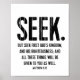 Bibel Vers Poster, mit dem Wort "SEEK" in schwarzem Retro-Schriftart, mit der Schrift Verse Matthew 6:33.