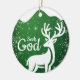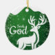 Seek God, Religious Holiday Ceramic Ornament with green sparkle glistening glow capturing the Christmas magic and joy of a Christian season. On the back, the sacred writing, Mark 11:24 states, "Therefore I tell you, whatever you ask for in prayer, believe that you have received it, and it will be yours" all in customizable text, ready for you create your favorite bible verse in festive devotional design hanging decorations. Order your Christs teachings testaments today and make your custom inspirational doctrine keepsakes extra special with passages of the word of God! 🎄⛪️