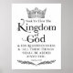 Elegante altenglische Kalligraphie-Typografie in schwarzen Briefen mit farbenfrohen Schriftzeichen, Laurel-Akzenten und handgezeichnet Königskronen zeigt geliebte Worte aus Jesus' Predigt auf dem Berg in Matthew 6:33, "Seek Ye First, das Reich Gottes und Seiner Rechtschaffenheit, und all dies wird euch hinzugefügt werden."