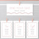 Minimalistische, moderne, rosafarbene Wavy Border Wedding Table Seating Charts Header Card. Alle Texte sind so vorbereitet, dass Sie sie einfach und schnell mit Ihren eigenen Details personalisieren können.