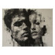 Fragmentierte Porträts zweier Individuen, vereint in einer abstrakten Komposition, die die Komplexität menschlicher Emotionen erforscht. Die ausdrucksstarke Technik und die monochrome Farbpalette verstärken die visuelle Wirkung.