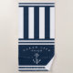 Modernes und trendiges Ocean nautical Design Badtuch perfekt für Ozeanliebhaber. Das Design zeichnet sich durch ein modernes marineblau-weißes Streifen-Design aus, das durch eine Kombination aus dicken vertikalen Streifen und dünnen horizontalen Streifen dieses moderne nautische Design schafft. "Ocean Life Is the Only Life" wird in einem stilvollen typografischen Design mit unserem handgezeichnet nautischen Anker und Seilgrafik gezeigt. Personalisieren Sie mit Ihrem Ortsnamen und Koordinaten für ein wirklich einzigartiges personalisiertes Badetuch, perfekt für den Urlaub, Geschenke, Hochzeiten und vieles mehr.