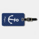 Dieses moderne Marineblau-Ausrüstungsbeschreibungen ein weißer Anker über einem gestreiften blauen Hintergrund.