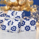 Seemuster mit Blau versendet Radmuster, das Sie Geschenke in der männlichen Art einwickeln lässt. Ich entwarf dieses als Geschenkverpackungspapier in einem Bootfahrtthema, das für jedermann arbeitet, das Liebeboote, Segeln oder Seeentwürfe.
