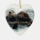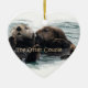 Entzückende Seeotterpaare gerahmt in einem Herzen auf einer Auswahl der Produkte und der Geschenke.