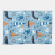 Ozean und SeethemaAusrüstungsbeschreibungswale, orange Segelboote, Krake, Krabben, Seepferde, Schiffsräder, Anker, Leuchttürme und mehr auf einem hübschen hellblauen Hintergrund.