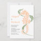 Seepferd- und Algenpfirsich und Salbeigrün Hochzeitseinladung, die ein pfirsiches Seepferd und grüne Algen enthält, während die Namen in einer modernen, fett gedruckten Typografie geschrieben werden. Dieses moderne skurrile Template Design ist perfekt für eine Sommerhochzeit am Strand. Der Rücken ist von massivem Salbei grün gehalten.