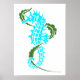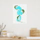 Seepferd Aqua blau, grün und Algen auf weißem Hintergrund Kinder Poster drucken.